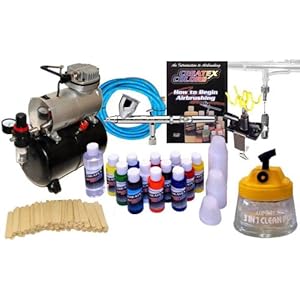 Bought this kit as a beginner looking for a good kit to start out with. Excellent value for what you get, everything that you need to start painting right out of the box. The Iwata HP-CS allows you very nice control with your airbrush, and leaves you with no problems. Compressor is alot quieter than I had expected and very easy to control. The video that comes with this kit is very helpful as well, I would recommend you to watch the video first if you are just beginning to show you all the basics, from the different types of paint, spray patterns, and different surfaces that you can paint on etc. Have no complaints, Amazon was fast with shipping and was the best price I could find. Would definitely recommend this kit to anyone looking to air brush just about anything. Awesome!!